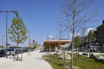 Le auvent trouve toute sa place sur parvis de la gare de Dinan, c’est un ouvrage ouvert au public, réalisé en Terre Crue avec une charpente bois Douglas, et sa couverture est en ETFE.